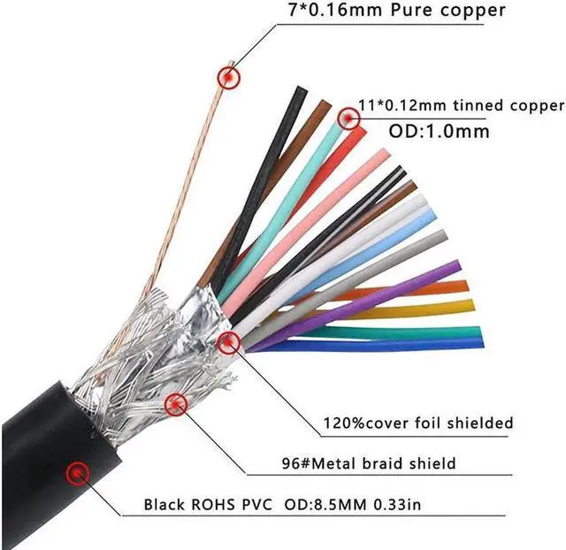 Db15 Shielded Cable Adopts Double-Layer Shielding Structure: Aluminum Foil Shielding + Metal Braided Mesh Shielding, Which Can Shield Emi / Rfi Interference Signals Generated By External Electric Field