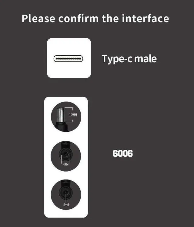 Connector (s) B: DC 6.0 * 3.7MM /DC 5.5 * 2.5MM /DC 4.0 * 1.35MM /DC 2.5 * 0.7MM 4 kinds of Male Plug optional