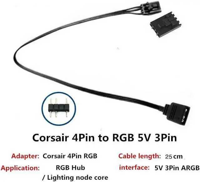 Aomoproing Corsair 5V 3-Pin ARGB to RGB 4Pin Male LED Adapter Cable for HD LL120 140 QL Fan 0.82 ft