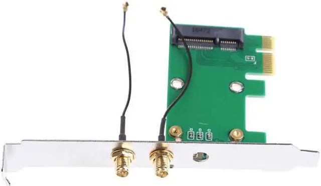 • Aomoproing Mini PCI-E to PCI-E 1X Desktop Adapter Convertor with Two Antennas for Wireless Wifi Network Card