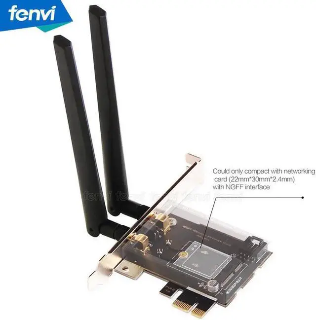 • Aomoproing PCI-e PCI Express 1X Adapter Desktop Converter with 2* 6dBi Antenna For Intel 8260NGW 7260NGW 7265 NGFF M.2 WiFi Bluetooth Card