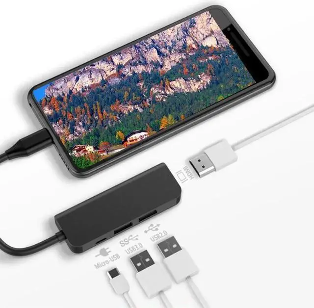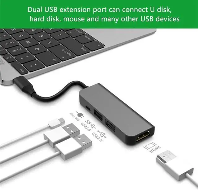 Aomoproing Type-C Docking Station, USB 3.0 +USB 2.0 +Micro-USB+HDMI-Compatible Five-In-One Hub for Laptops, Pcs