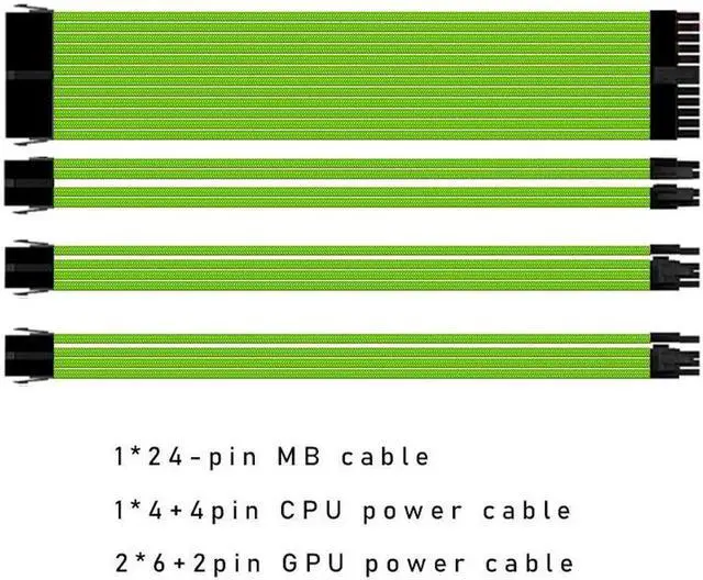 Mod Sleeved Cable, Green Power Supply Cable Extension Kit, 24PIN ATX, 4+4 PIN EPS, Dual 6+2 PIN PCIE(11.81")