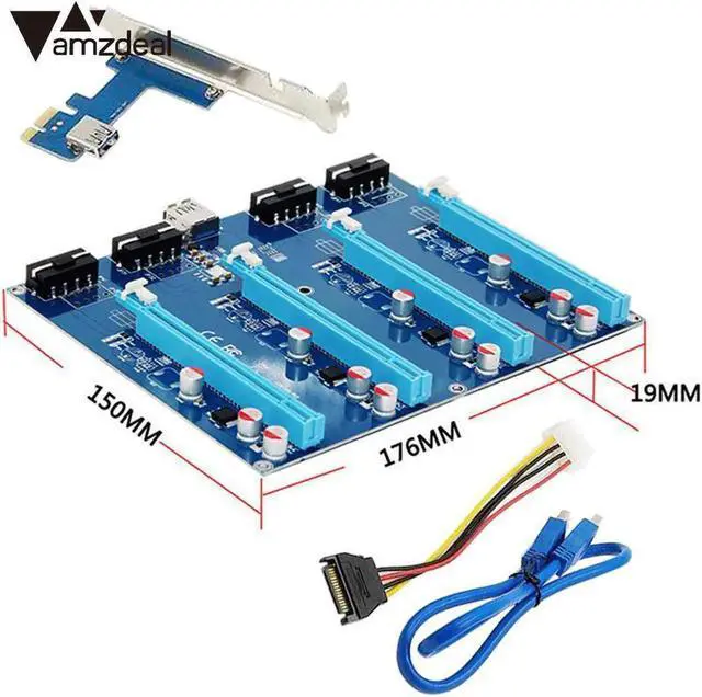 • Aomoproing Expansion Card 1 To 4 High Speed Adapter Card PCI-E 1X To 4 PCI-E 16X Motherboard Riser Card GPU USB3.0 for BTC LTC ETH