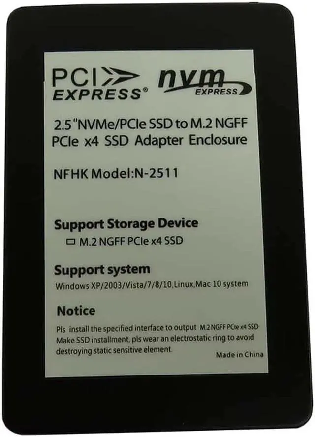 • Aomoproing 2.5" inch PCIe NVMe to M.2 NGFF PCIe x4 SSD replace U.2 SFF-8639 Samsung XS1715 XS1725 PM953 PM963 PCIe NVMe SSD adapter card