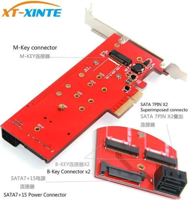 Aomoproing 3 Interfaces M.2 NVMe SSD NGFF to PCIE X16 Riser Card M Key B KEY Interface Card Support PCI Express 3.0 4X M2 SATA