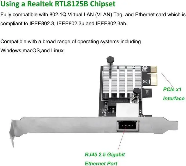 • Aomoproing NEW 100/1000M/2.5G RJ45 Network adapter RJ45 RTL8125B Chipset PCIe PCI Express Network Lan Card