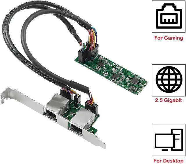 • Aomoproing M.2 to Dual Port 2.5G Ethernet NIC Network Card M.2 22*80mm size B Key and M Key 2500 Mbps RTL8125B Chipset