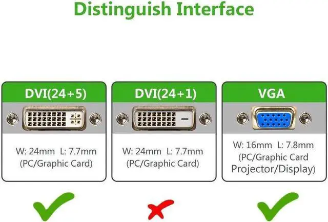 • Note:This is DVI-I 24+5 to VGA adapter, NOT DVI-D to VGA, please make sure your devices are compatible with DVI-I 24+5 interface before purchasing.