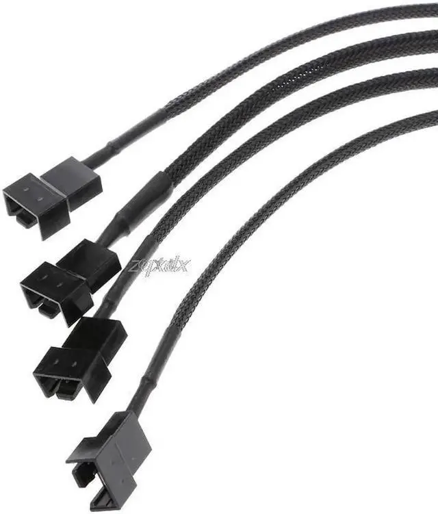 • 1 To 4 Way Y-Splitter Sleeved 4-Pin Molex Male To 4x 3-Pin/4-Pin PWM Male Connector Fan Extension Adapter Cable