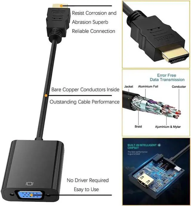 [SUPERIOR STABILITY]- Built-in advanced IC chip converts HDMI digital signal to VGA analog signal; It is NOT a bi-directional converter and cannot transmit signals from VGA to HDMI