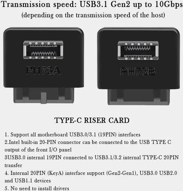 Support all motherboard USB 3.0 / 3.1 (19PIN) interfaces