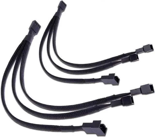 TeamProfitcom PWM Fan Splitter Adapter Cable Sleeved Braided Y Splitter Computer PC 4 Pin Fan Extension Power Cable 1 to 3 Converter 10 inches (2 Pack)