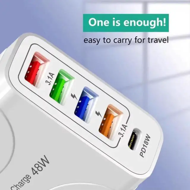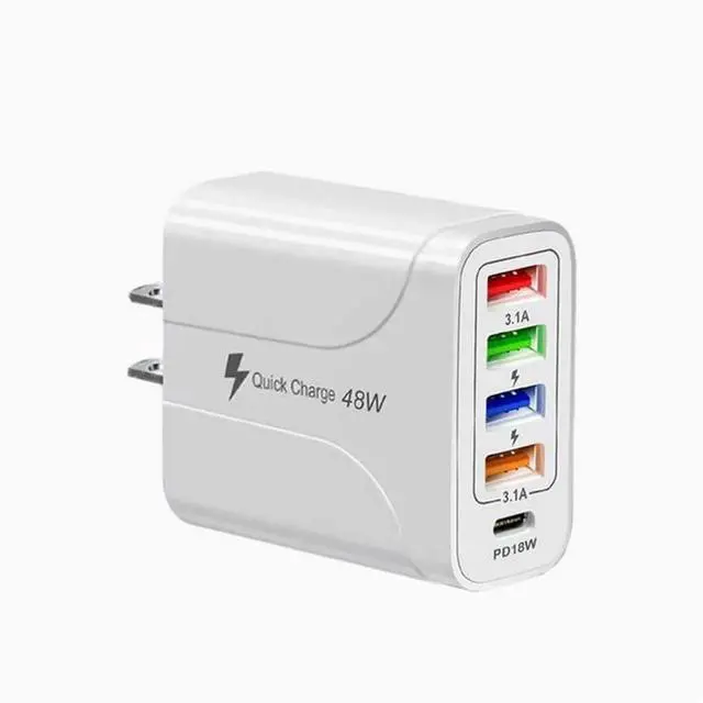 4USB charger PD18W 5-in-1 charger 48W Multi-interface charger PD Fast charger Black