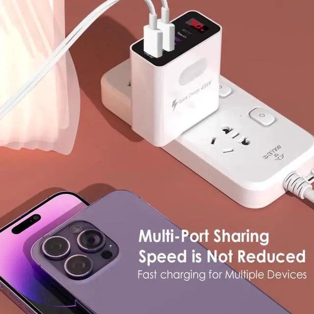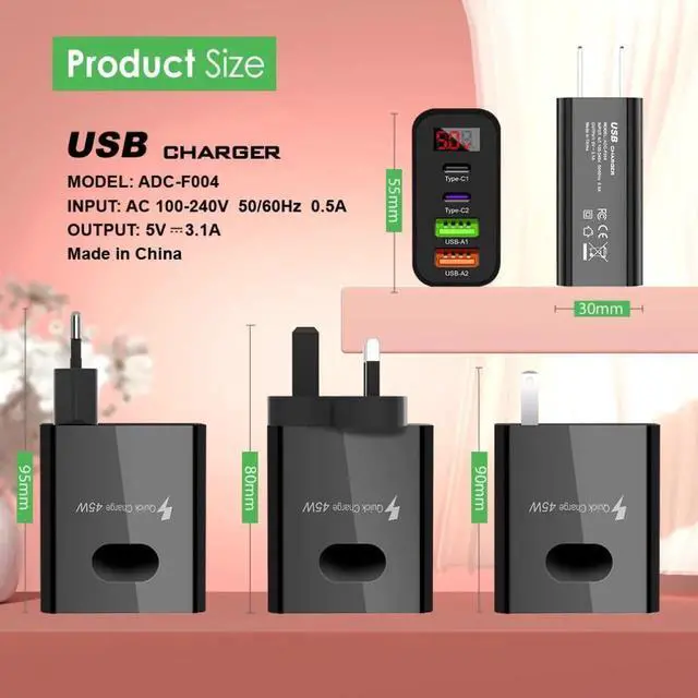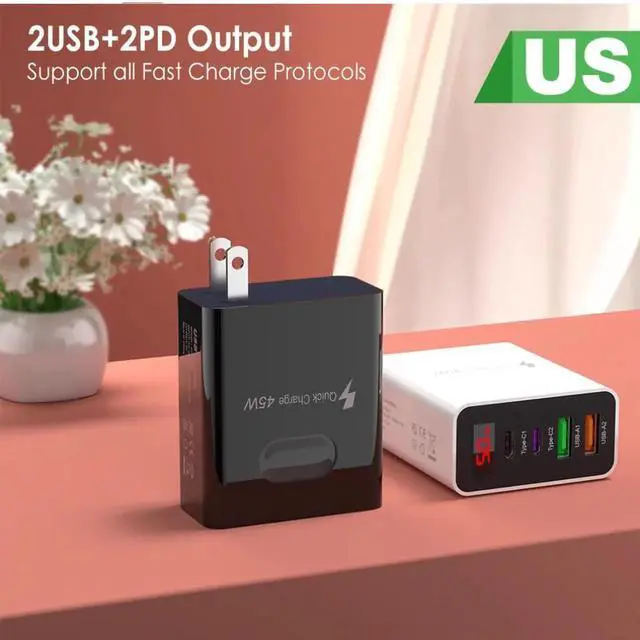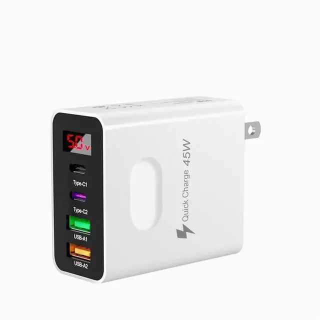 45W2usb Dual type Fast charge mobile phone charger Dual type Fast charge 4 interface PD with on-screen digital display Black