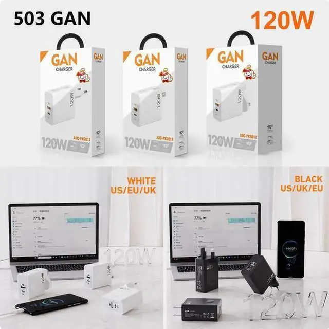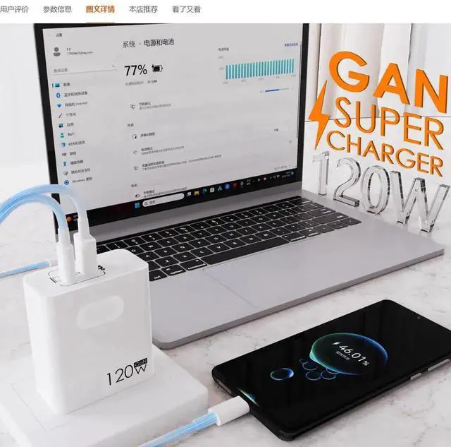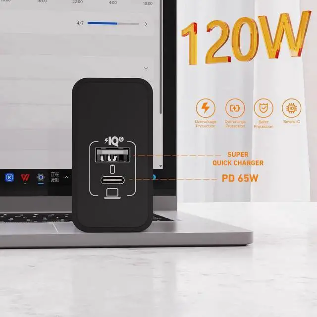 120W phone charger MacBook Pro laptop charger Super Fast charge flash charge PD Black