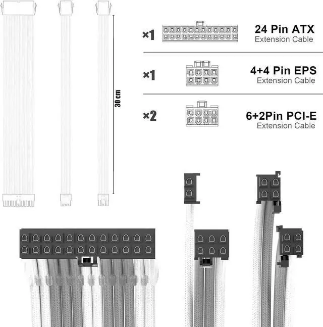 • New Generation PSU Cable Extension -The length of each power cable is 30cm. PSU cable kit uses Triple Layer Weaving design and is wrapped with super soft silicone, which can be easily formed into the desired shape. Through market research, we found that other brands of PSU extension cable kits are difficult to bend. Due to processing problems, products of other brands are prone to produce odor when used at high temperature. cable kits have effectively improved this situation.