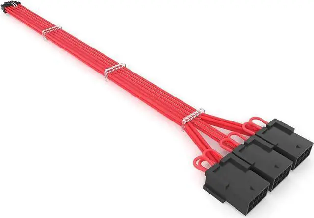 Cable manufactured with 16AWG wires and come in a high-density flexible PET meterial sleeve, will be stiff than the cotton weaving, but guaranteed wear and heat resistance, it also be bendable and keep the shape, save your chassis spase.