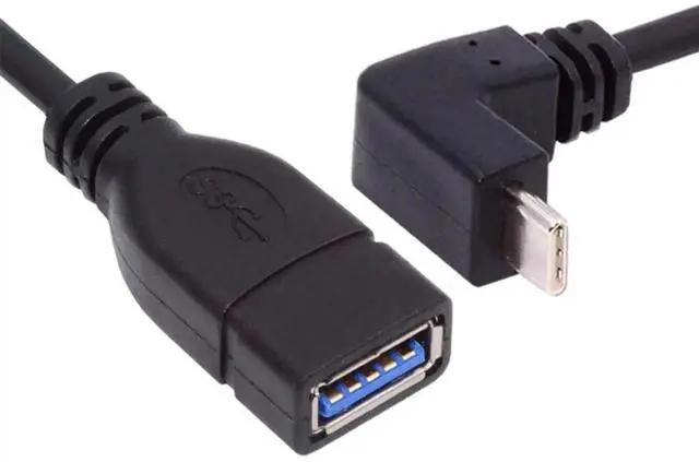 Aomoproing USB-C USB 3.1 Type-C Male to USB 3.0-A Female 10Gbps OTG Data Power Cable Up Down Angled 20cm