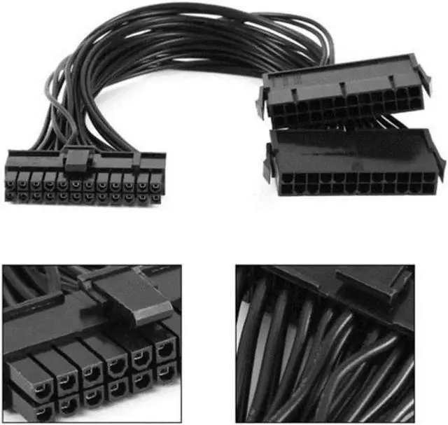 Use this Dual 24-pin to 24-pin power supply connector to power a motherboard with two PSUs. The 2 x 24-pin Power PSU connectors will connect to to 1 x 24-pin Motherboard connector. Works great on Crypto Currency System Builds and gaming configurations.