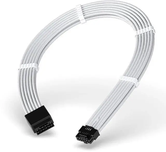 GPU Power Sleeved Cable Extension, 16pin(12+4) 12VHPWR PCIe 5.0 Connector Male to Female for RTX 3090Ti 4070Ti 4080 4090, With Cable Combs-16AWG/White