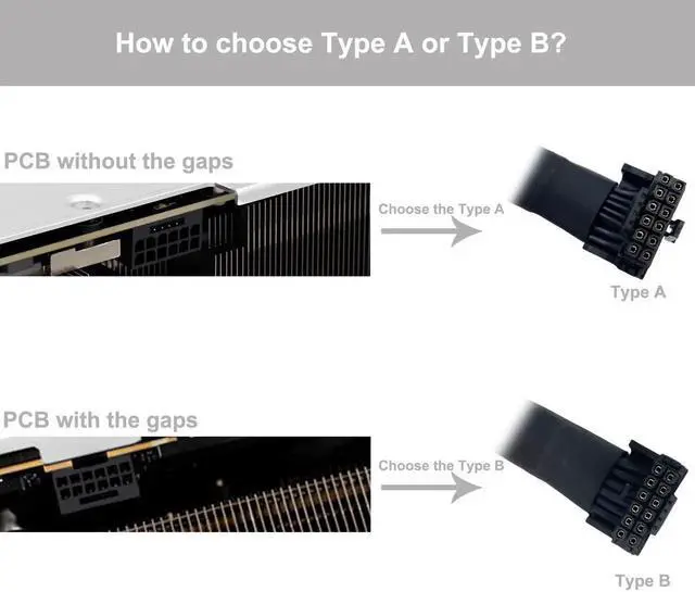 Please pay attention to the direction of 90 degree angled 16 pin connector. The Type A works with the PCB board without gap, the Type B works with the PCB board having gap. Please refer to the 5th photo about how to choose the Type A or Type B;