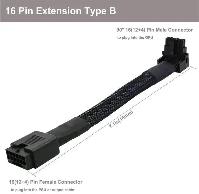 12VHPWR Cable is designed to designed for GeForce RTX 4090 4080 4070Ti 3090Ti GPU. Providing a convenient solution for changing the installing direction of PCIe cables with the 90-degree angled PCIe extension cables.
