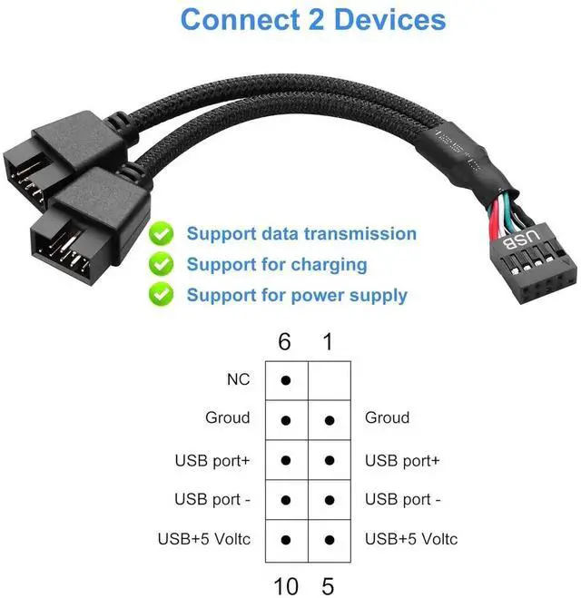High-Speed & Shieldedusb header splitter supports high-speed data transmission speed of up to 480Mbps, conforms to the USB 2.0 specification, and has efficient performance. Shielded cables minimize electromagnetic interference and ensure signal integrity, improve transmission speed.