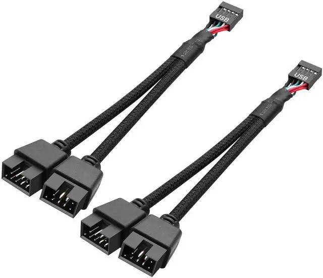 1 to 2 DesignMotherboard USB 2.0 9pin header splitter solves the problem of insufficient USB ports on the motherboard interface, converts the USB 2.0 9-pin on the motherboard into a dual 9Pin port.