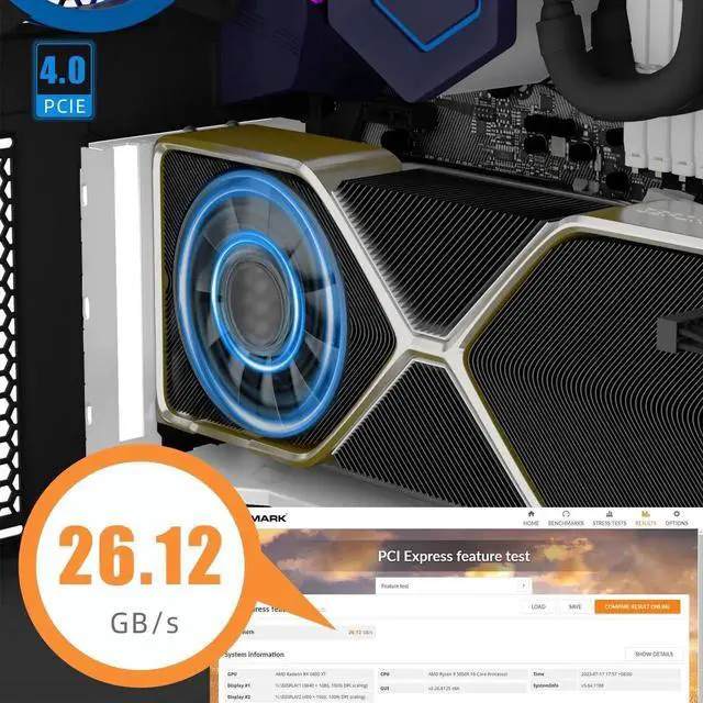 To achieve PCIE 4.0 bandwidth (Theoretical speed 32GB/s, Test Speed=~26GB/s): CPU requirements Intel 11th Gen or Ryzen 5000 Series and above; GPU requirements GeForce RTX 40/30 Series or AMD Radeon RX 7000/6000 Series, etc.