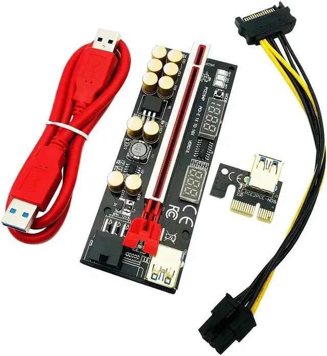 6PCS Riser 016 USB 3.0 PCIE Riser PCI Express X16 Extender Adapter 016 GPU Riser Card SATA 15pin to 6pin Power Voltage Monitoring