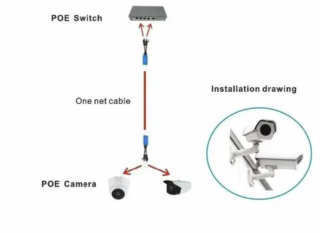 1pair RJ45 splitter combiner uPOE cable, two POE camera use one net cable POE Adapter Cable Connectors Passive Power Cable