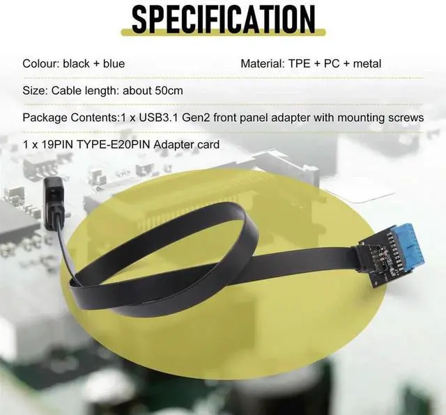 USB 3.1 Type C Front Panel Header Extension Cable 50 cm, USB 3.1 Type E to USB 3.1 Type C Cable, Gen 2 10 Gbps Cable