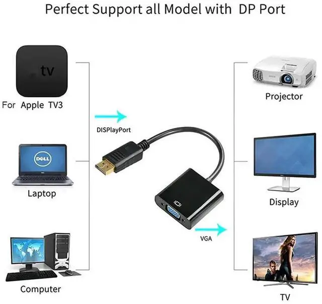 DisplayPort DP to VGA Adapter Cable Display Port For Projector DTV TV HDVD Laptop DP Male to VGA Female Converter Adapter Cable