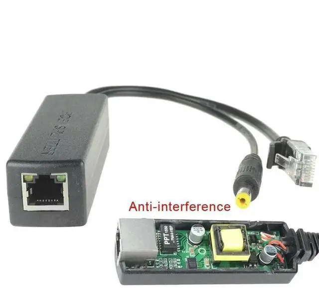 24V to 12V PoE Splitter, 15W POE Adapter cable, Anti - interference Power supply module, DC 5.5 * 2.1 mm Connector for IP Camera