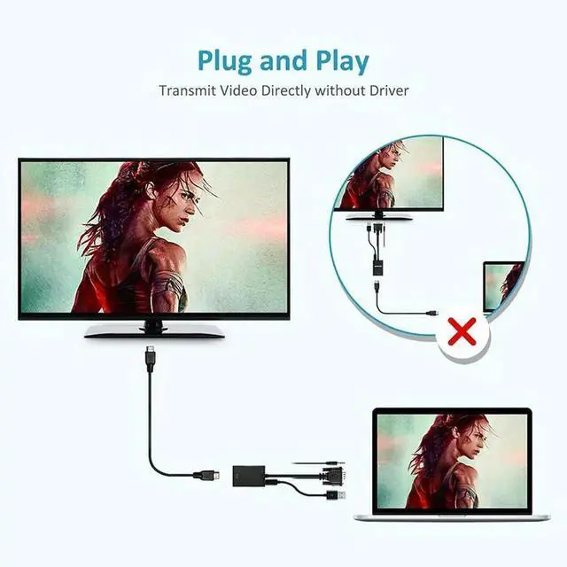 VGA to HDMI-compatible Audio Converter Adapter Cable 1080P With Audio Output VGA HD Adapter for laptop to HDTV Projector