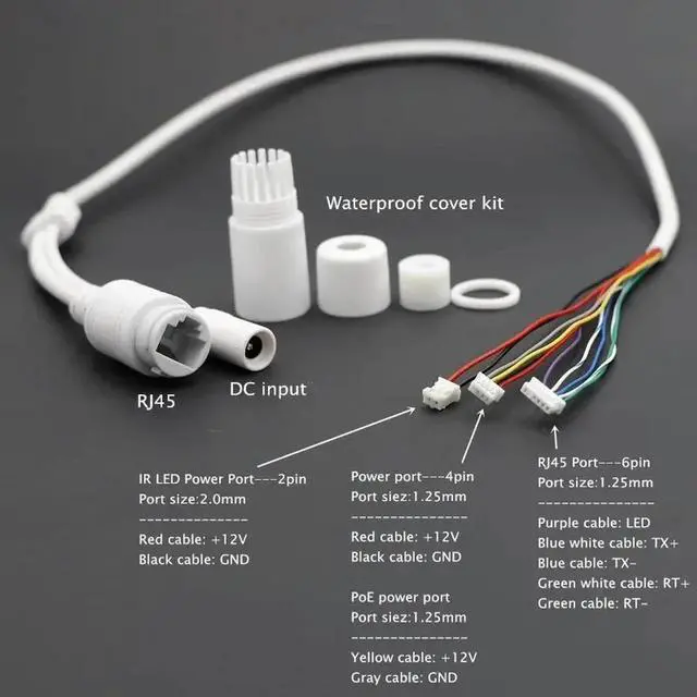 65cm Waterproof POE Cable for IP CCTV Camera - RJ45 Female Connector with Power Terminals for Network Camera PCB Module