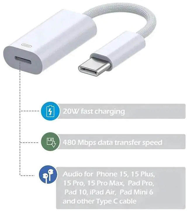 USB C Male To For Interfac Female Cable Converter Support Charging+Headphone+Call+Data Transmission For 1