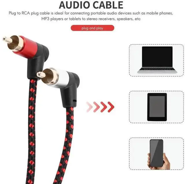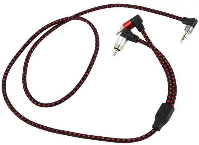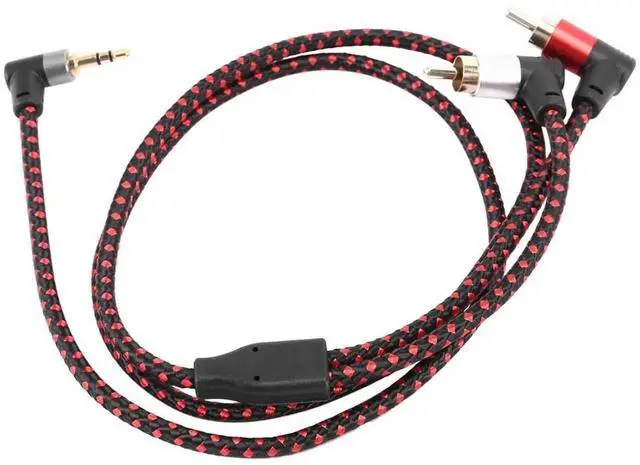 90 Degree 3.5 mm Male to 2 RCA Male Cable Right Angle Stereo AUX Y Splitter Cord Microphone Jack Plug for Laptop 1M
