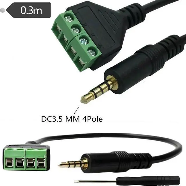 3.5 mm 1/8" Stereo TRRS Male 4 Pole To 4 Pin AV Screw Video Shield Balun Terminal Plug Connector Solderless Block Adapter Cable