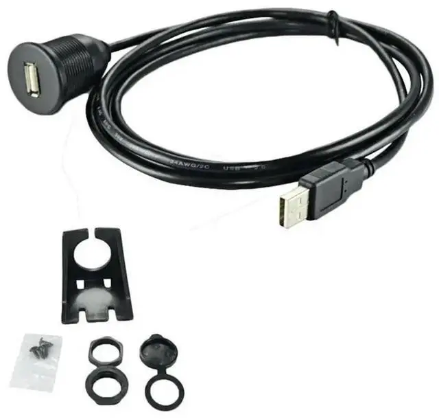 Waterproof USB 2.0 Male To Female Extension Cable, 2 Meters with Bracket for Motorcycle Wheel, Boat, Car Dashboard Audio