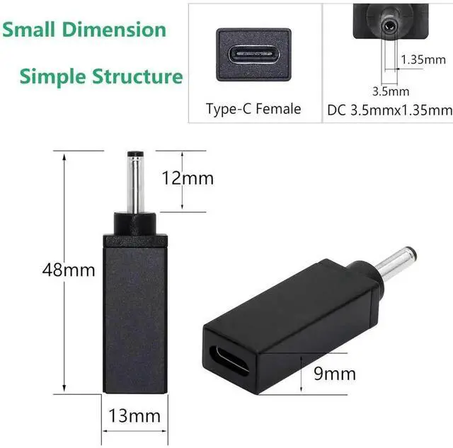 1pc 100W DC PD Power USB-C Type C 3.1 Female Input to 3.5 mm x 1.35 mm Male Charger Charging Adapter Connector for Laptop