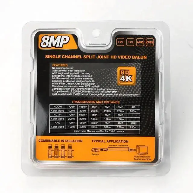 1Pairs 8MP BNC Video Balun Connector Transmission Twisted Pair Transmitter Cctv Cable Support HD 8MP AHD/CVI/TVI Camera