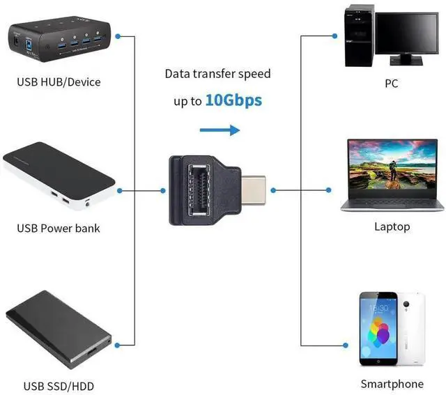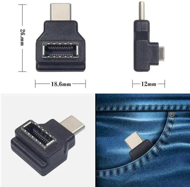 90 Degree Angle USB 3.1 C Male to Type E Female Front Panel Header Extension Adapter 10Gbps Converter for Motherboard Internal