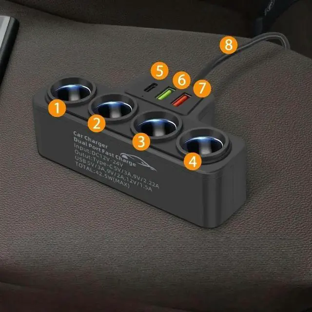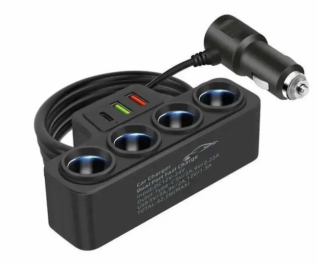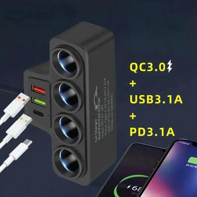 V/24V Car Cigarette Lighter Adapter 4-Socket 3.1A Charger Charger USB Car USB+QC 3.0 +PD 3.1A Accessories 120W Power Outlet