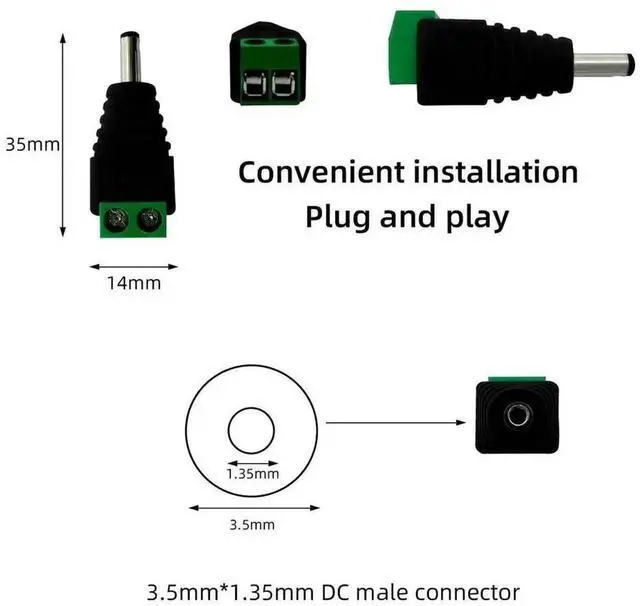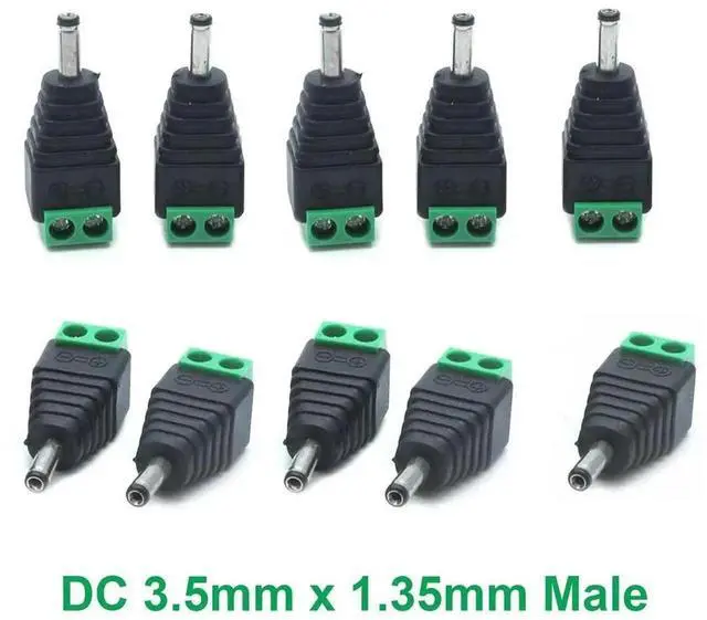 10pcs 3.5 mm x 1.35 mm Male Plug To AV Screw Terminal Plug Connector DC CCTV Video AV Balun Connector for LED Security Camera