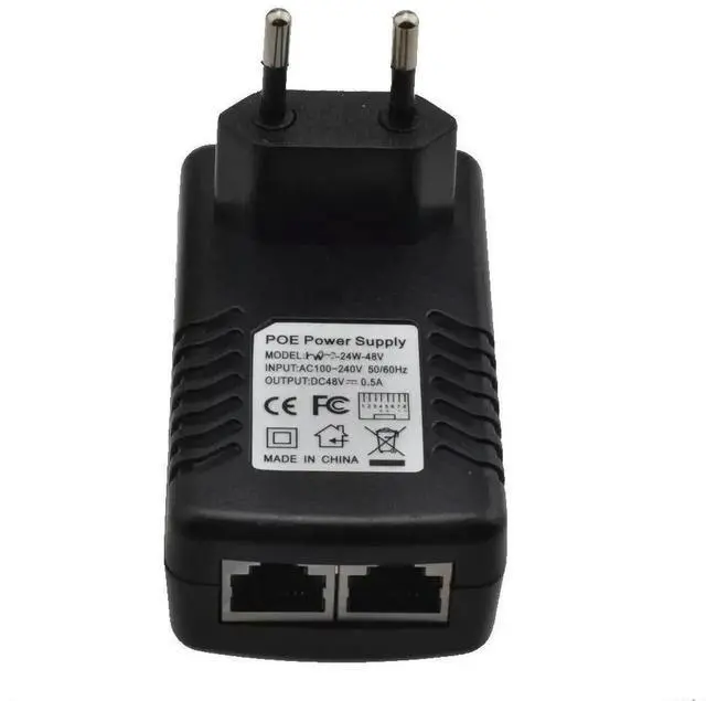 48V POE injector Ethernet CCTV Power Adapter 0.5A 24W, POE pin4/5(+), 7/8(-) Compatible with IEEE 802.3 af for IP camera IP Phones