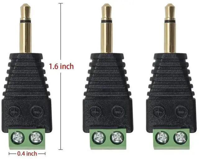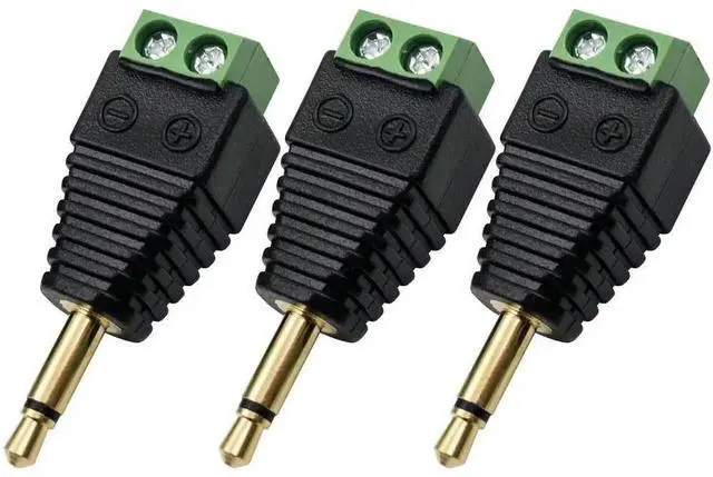 3pcs Adapter Converter 3.5 mm 1/8" TS Mono Male Plug To 2 Pin AV Screw Video AV AUX Balun Speaker Wire Screw Terminal Solderless