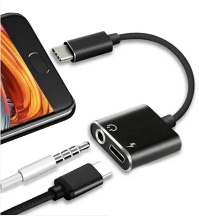 2 Pcs 2 In1 Type-C To 3.5M m Headphone Jack Adaptor/Connector Charger, Earphone Aux Audio & Charge Adaptor Black & Silver