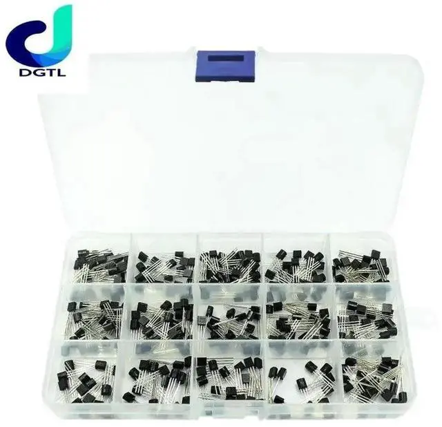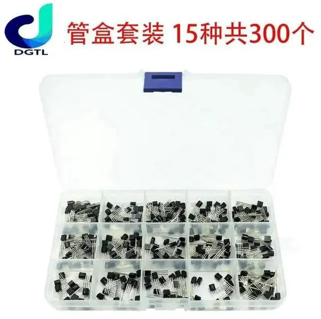 300Pcs 15 Value x 20 Pcs Transistor TO-92 Assortment Box Kit Transistors S9012 S9013 S9014 S8050 S8550 2N3904 2N3906 BC327 BC337